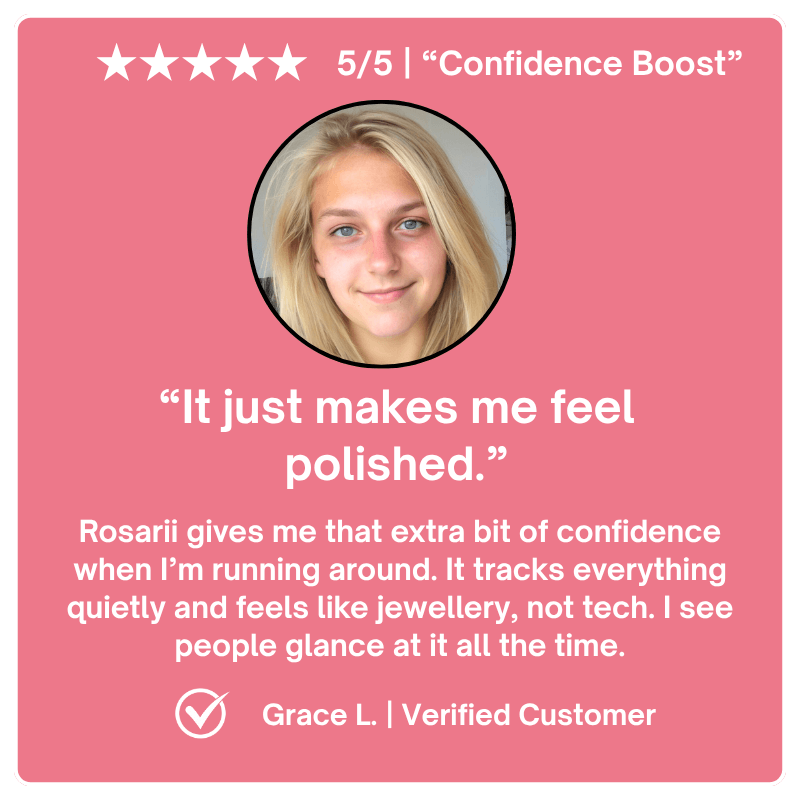 Your Rosarii smartwatch is refined where others are rigid, intuitive where others overwhelm. With a 7-day battery, a diamond-cut design, and a suite made for women’s wellness, it moulds to your pace, your rhythm, your life.